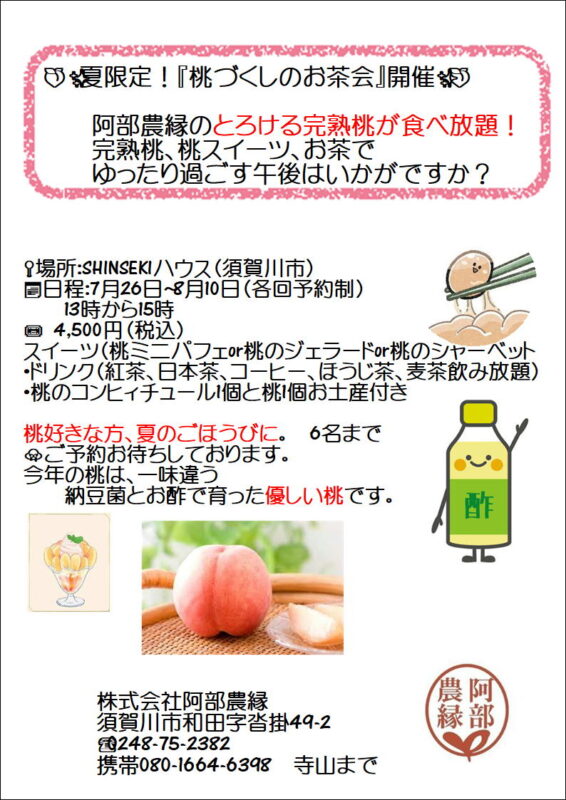 桃づくしのお茶会 桃の食べ放題 桃パフェ 桃ジェラード 桃シャーベットはじまります